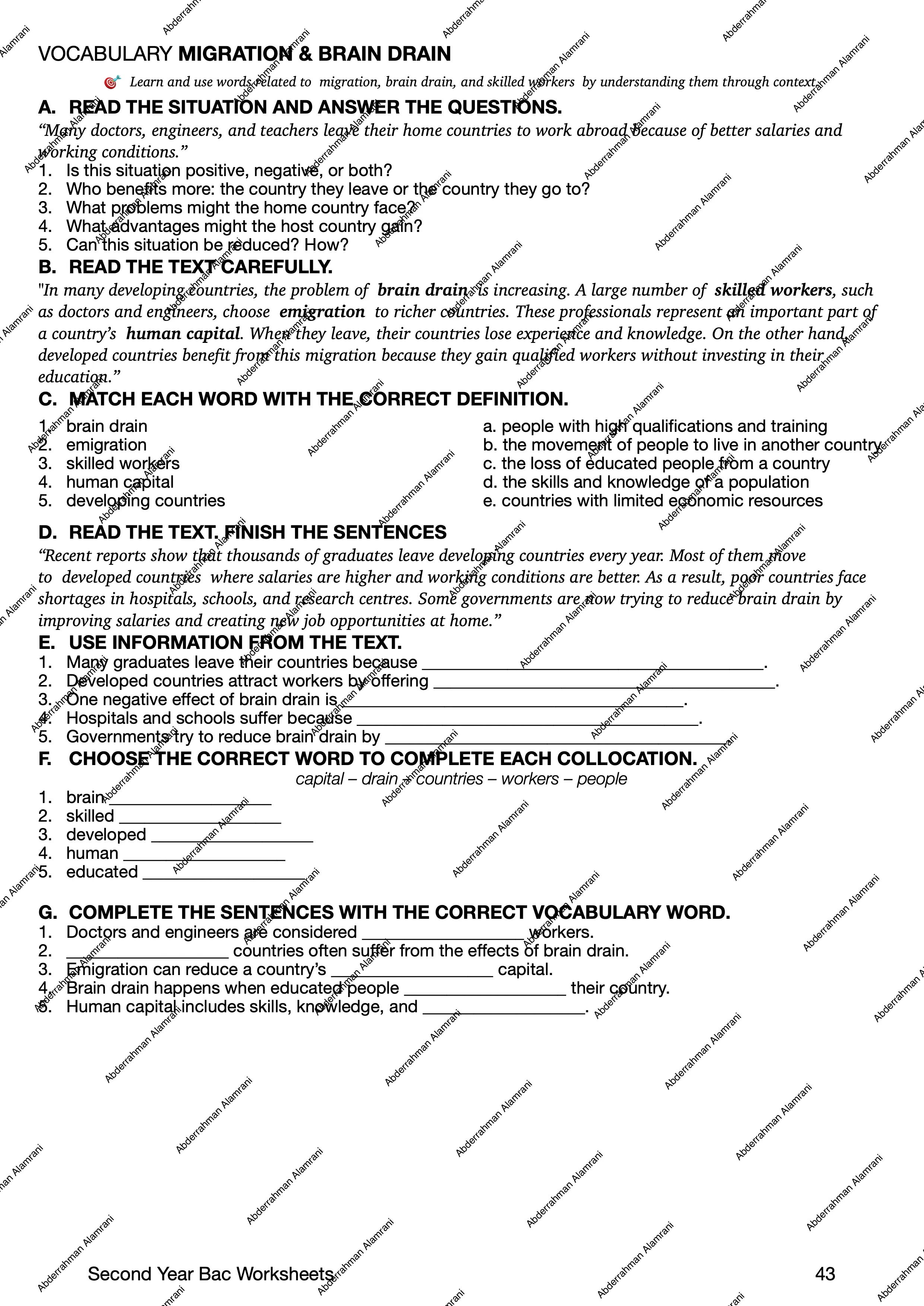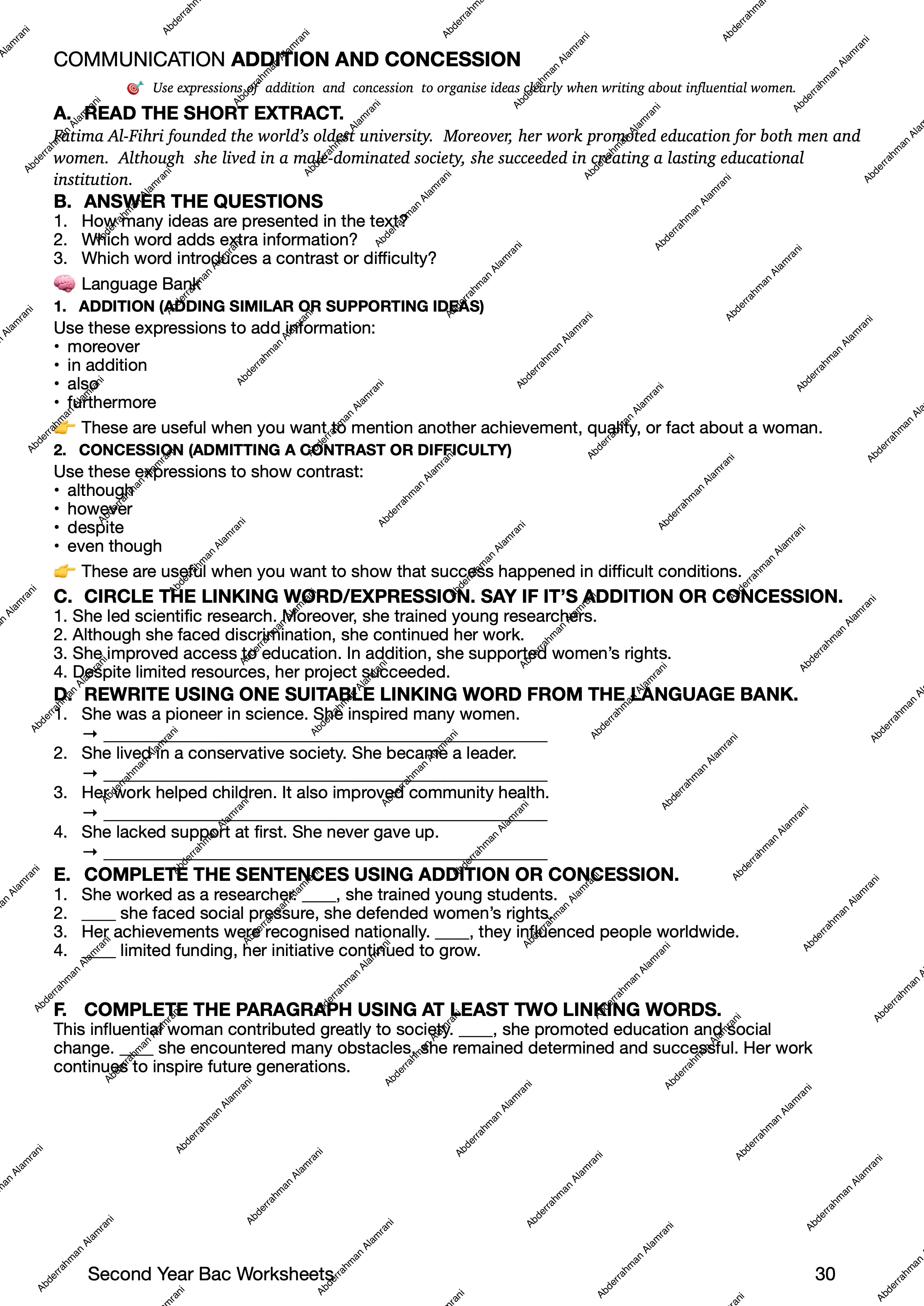 All worksheet sections are currently work in progress and are being developed progressively with a clear structure aligned to the Moroccan curriculum.