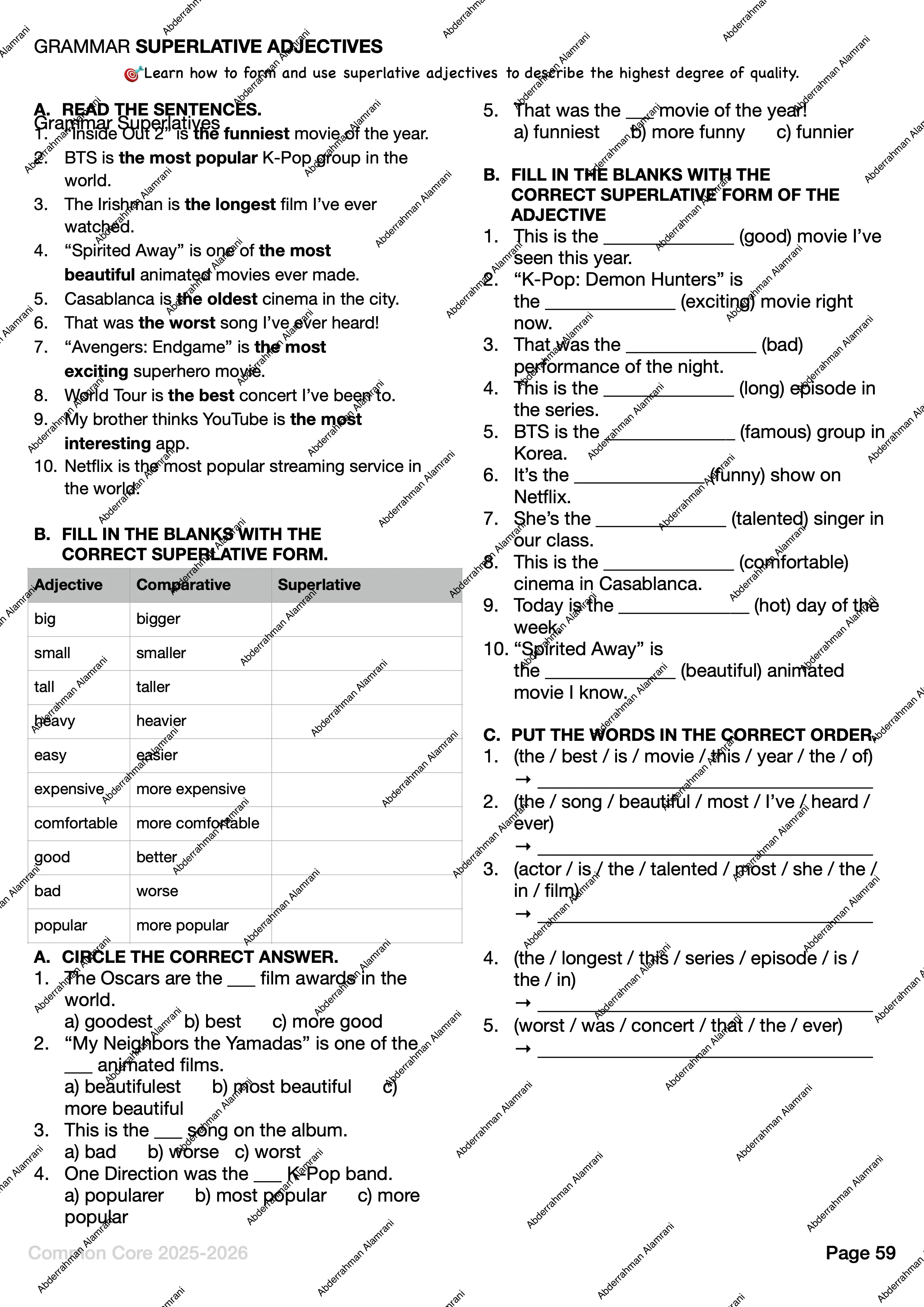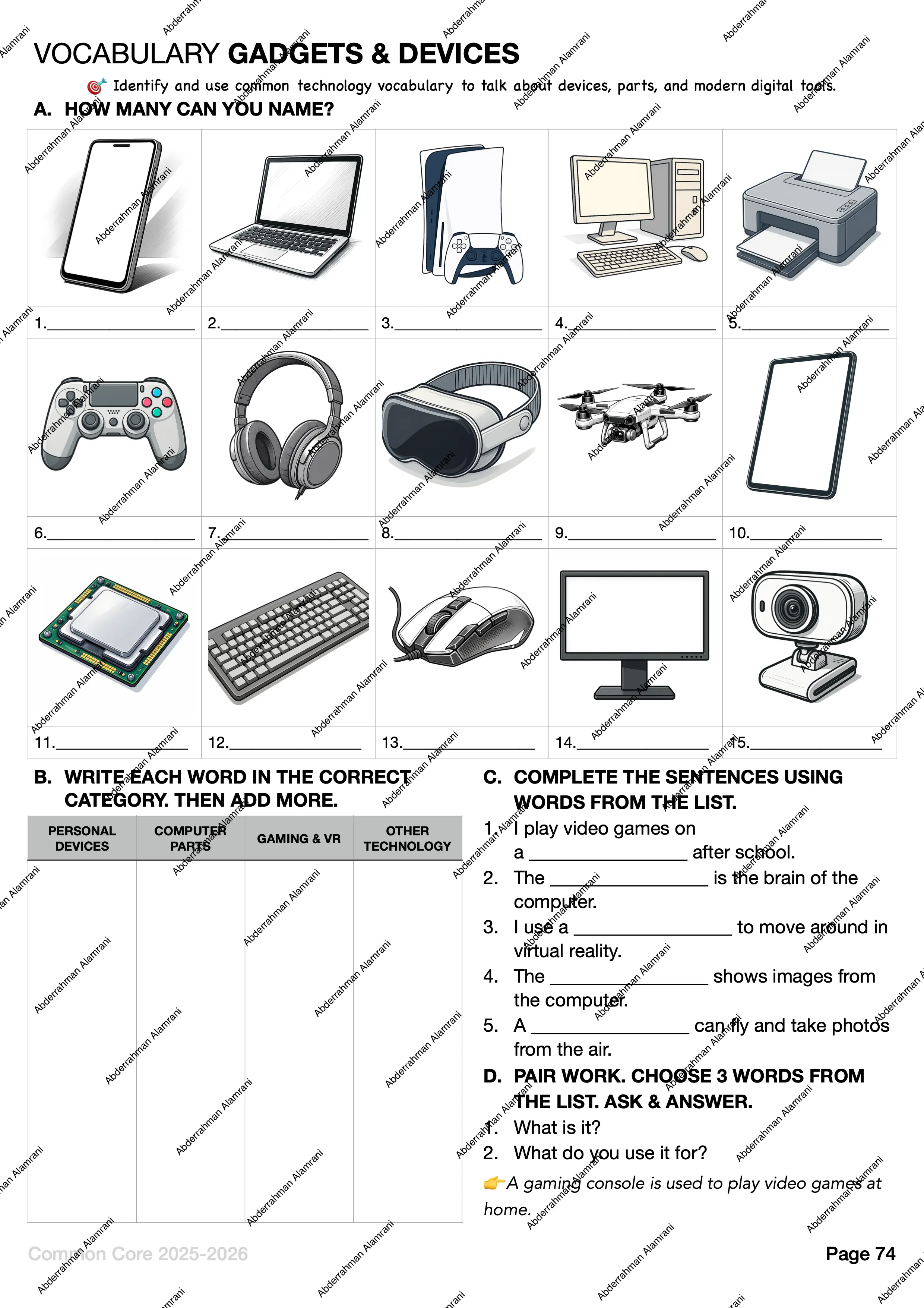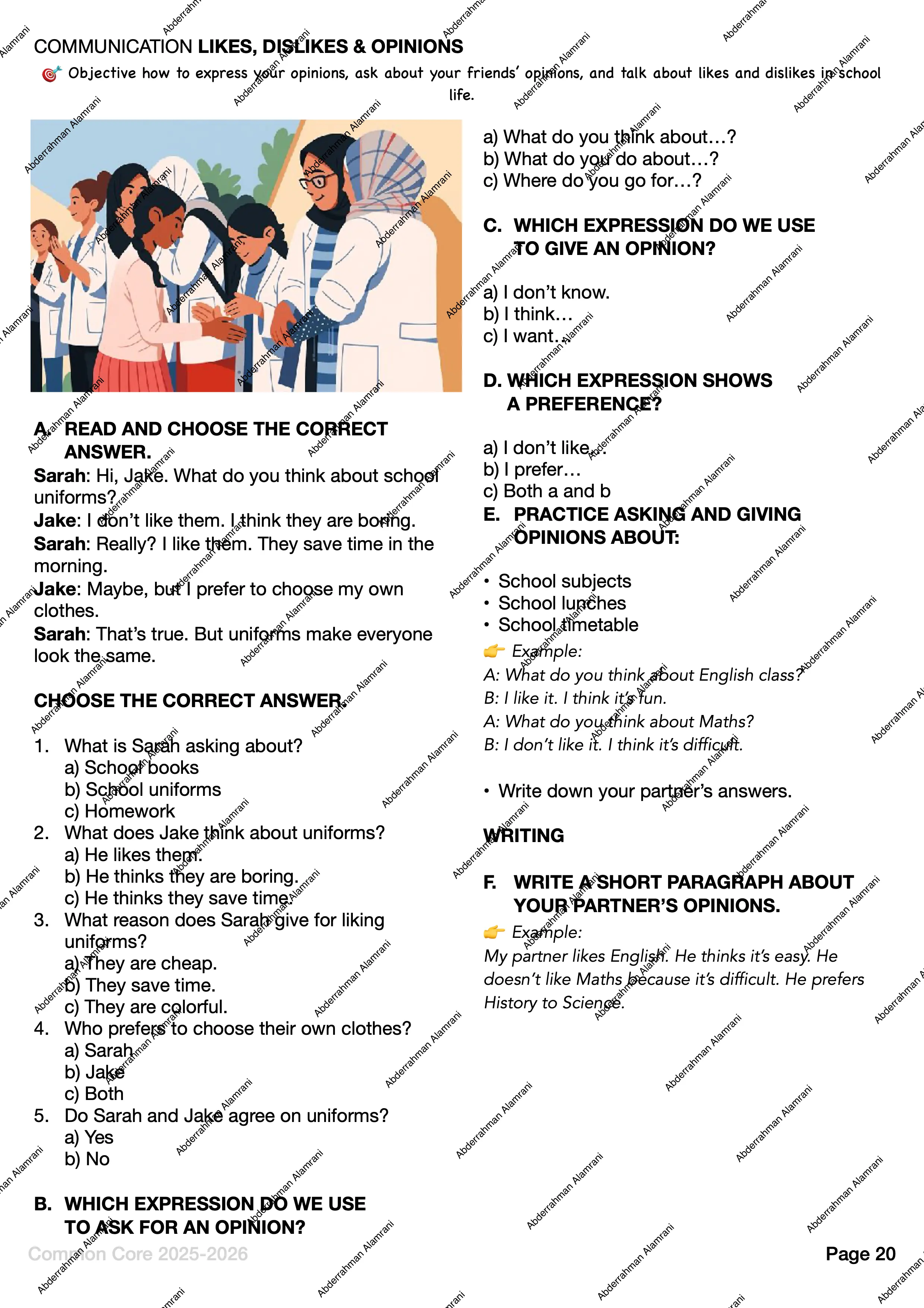 - Vocabulary, Reading, Communication, Grammar, Writing