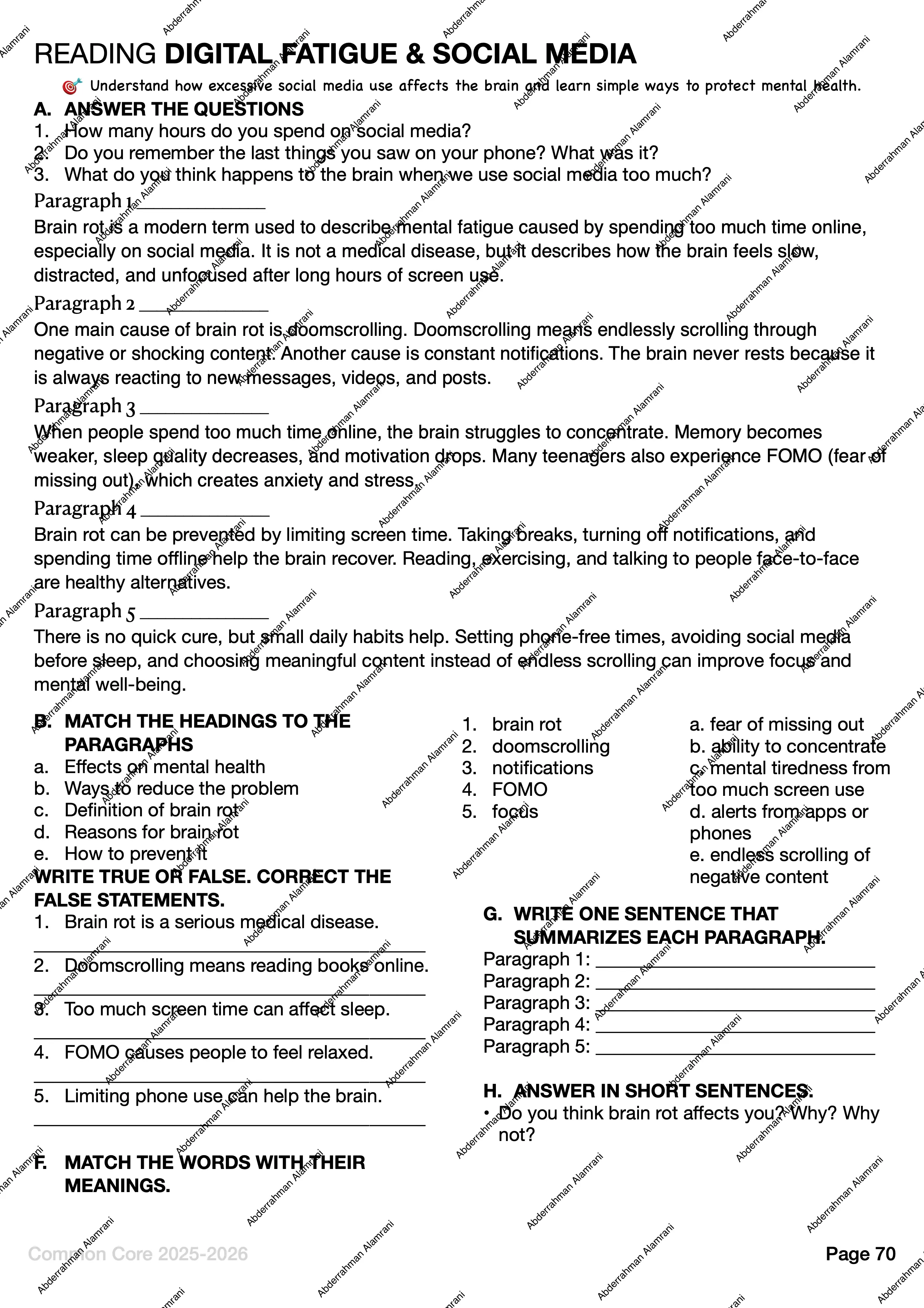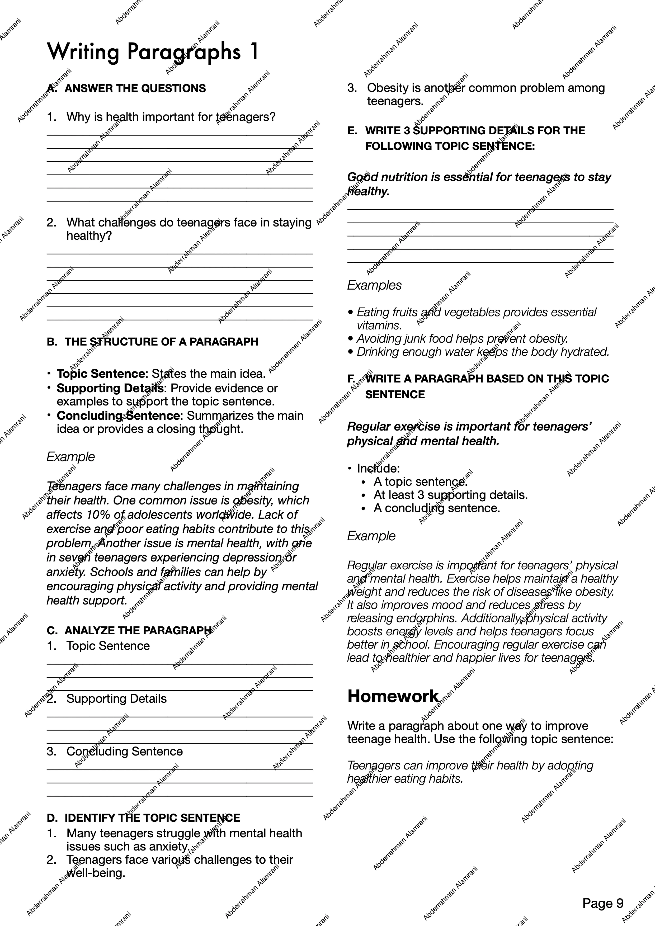 - Reading and writing practice