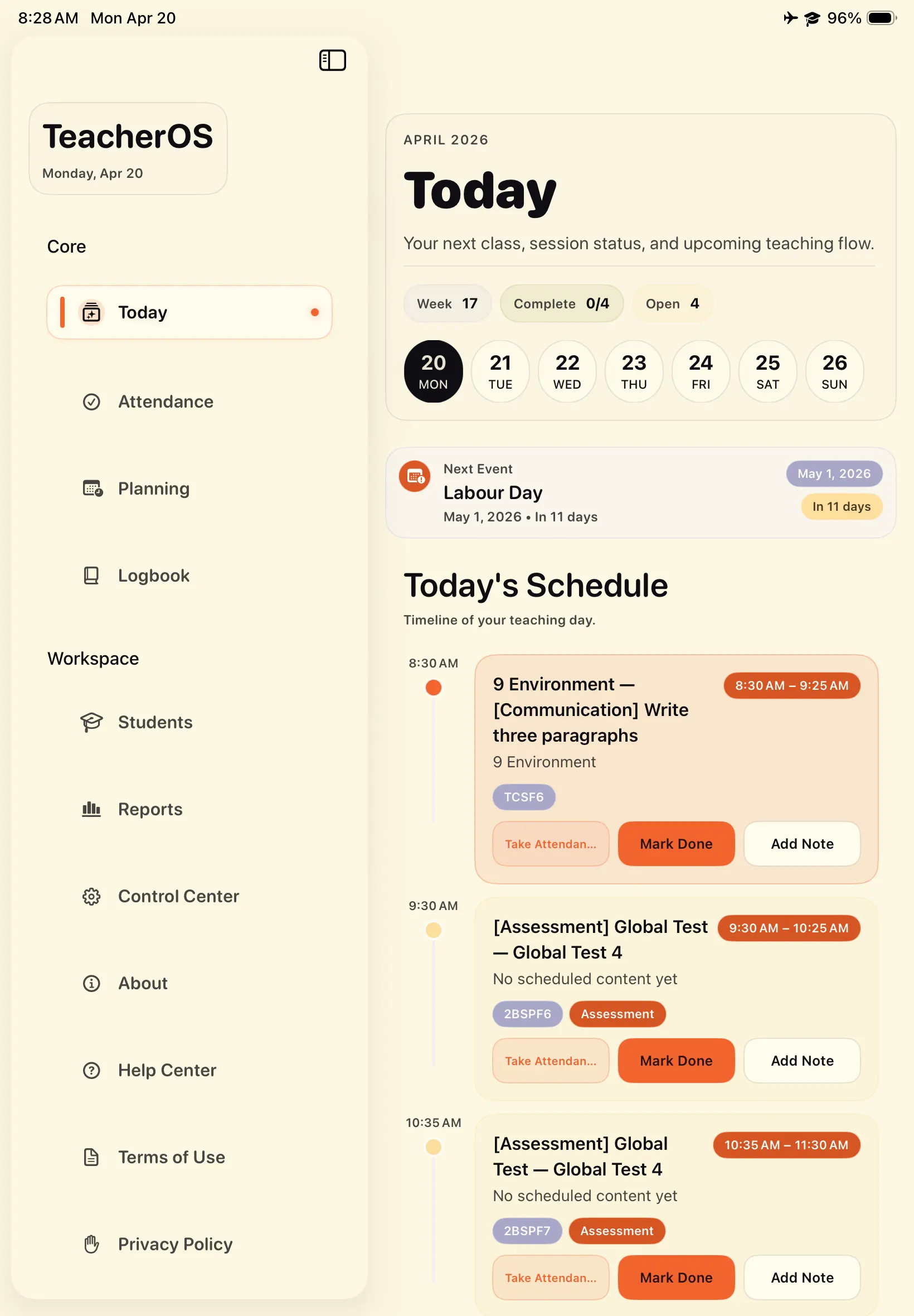 A planner-first teaching app designed to organize daily teaching work with clarity and focus.